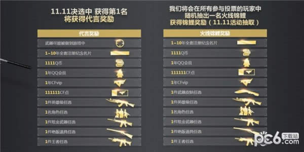 2.其作者将会得到1111Q币奖励,1年QQ会员等奖励。同时我们将会在所有参与投票的玩家中,随机抽出一名火线锦鲤,获得超级奖励。