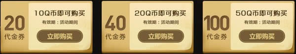 1.活动开启后到11.10 23:59:59,用户可分别使用10Q币,20Q币,50Q币,购买20活动代金券、40活动代金券、100活动代金券;
