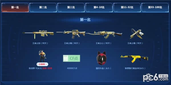 3.活动期间,玩家进行枪王排位爆破模式,累计胜利局数,累计胜利局数前100名可以获得以下丰厚奖励(活动结束后,7个工作日发放奖励)