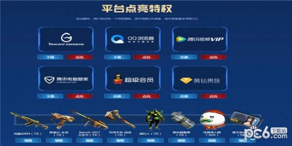 4.活动期间,用户每点亮一个特权图标,即可领取1件装备,每件装备最多领取1次