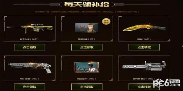【2】当天游戏一局,玩家即可任选三件武器领取,每天仅限领取一次,领完为止。(此模块6月29日开启)