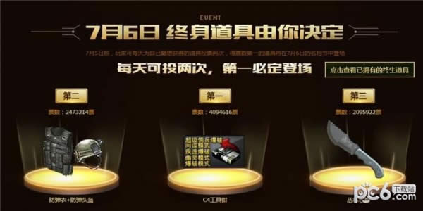 【3】7月5日前,玩家可每天为自己最想获得的道具投票两次,得票数第一的道具将在7月6日的名枪节中登场
