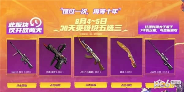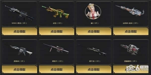 2.不可重复领取,每天最多领取2件,最多一共领取10件武器