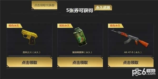 4.玩家当天游戏一局,可领取一张兑换券,兑换券可用于兑换极品武器,每天仅限获得一张,最多可获得5张,除源武器全部礼券可兑换两次外,其余武器均只能兑换一次。(总共分为三档,每档中每个武器武器的兑换都会消耗相应的兑换券)。