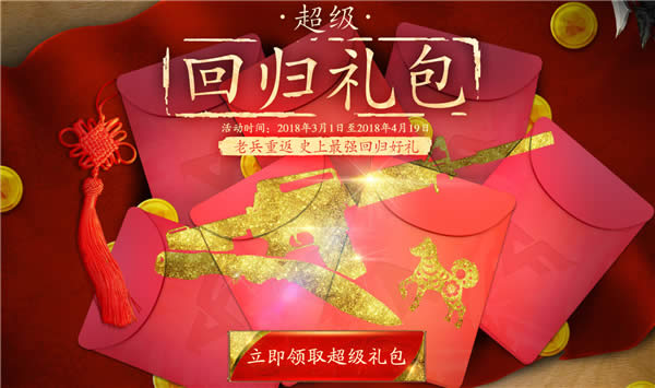 穿越火线在2018年推出了史上最强的回归好礼,玩家朋友们只需要点击进入cf超级回归礼包2018活动地址即可领取2018年有史以来最丰富的回归礼包,不管你玩或不玩,领到自己的仓库里总没有坏处,马上点击进入2018cf超级回归礼包领取地址领取属于你的礼包吧。