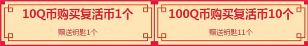 1.10Q币购买复活币1个可获得1个钥匙,100Q币购买复活币10个可获得11个钥匙;