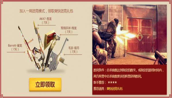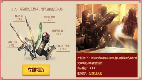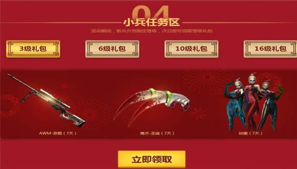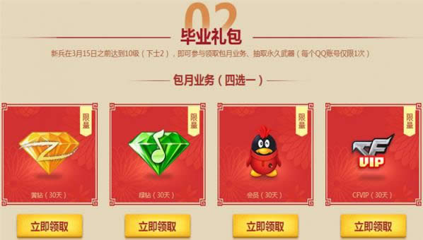 新兵在3月15日之前达到10级(下士2),即可参与领取包月业务、抽取永久武器(每个QQ账号仅限1次)