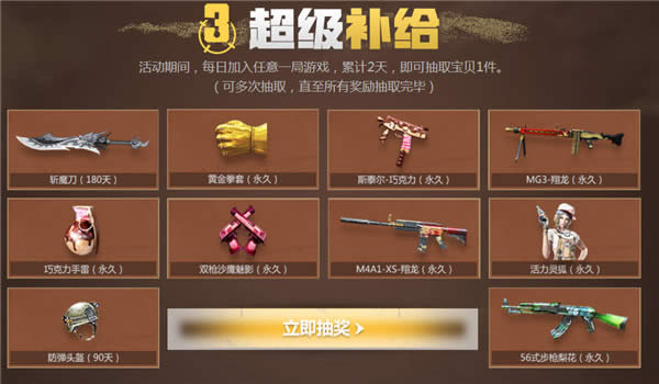 4.活动期间,每日加入任意一局游戏,累计2天,即可抽取宝贝1件。(可多次抽取,直至所有奖励抽取完毕)