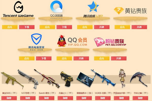 活动期间,用户每点亮一个特权图标,即可领取1件装备,每件装备最多领取1次。