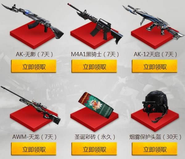 幸运用户可任意选择【四个道具领取】,每个道具只能领取一次哦