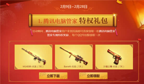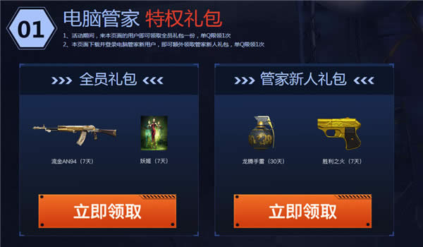 1.来到本页面的CF用户可直接领取全员礼包一份;活动期间,在本页面下载安装并登录管家即可领取管家专属礼包一份,单Q限领一次