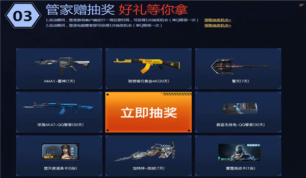 5.每日登录cf游戏完成任意一场对局,可领取1次抽奖机会,每日限1次;