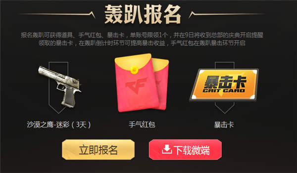 1.报名轰趴可获得道具、手气红包、暴击卡,单账号限领1个,并在9日将收到总部的庆典开启提醒