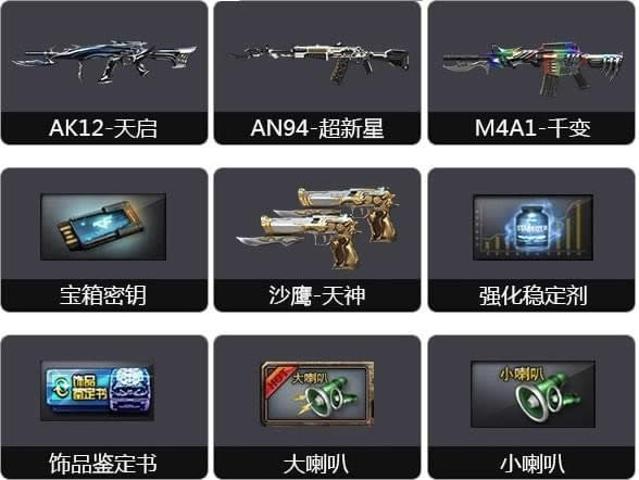 活动期间在掌上道聚城APP购买奖券D(1个)或奖券D(10个)即可获得抽奖机会,奖池包括四款永久英雄级武器(M4A1-千变、沙鹰-天神、AN94-超新星、AK12-天启)!