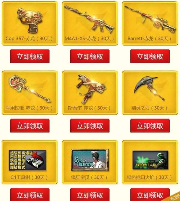每种道具仅限领取1次。(直至所有道具领完为止)。