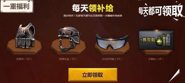 国庆特供!玩家每天都可在页面领取一次爆破补给套装。