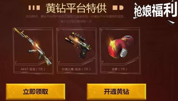 活动期间,黄钻平台用户来到页面即可直接领取一份黄钻平台专属特权奖励,每个QQ号仅限领取一次!