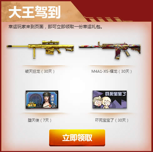 幸运玩家来到页面,即可立即领取一份幸运礼包。