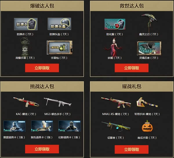 任意游戏1局,可再从4份战斗礼包中选择2份领取。可累计领取3份战斗礼包。(每个礼包单Q限领取1次)