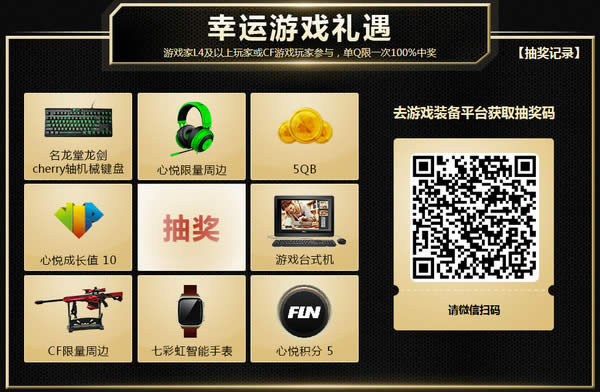 游戏家L4以上玩家或CF游戏玩家参与,单Q限一次100%中奖