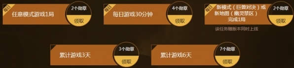 玩家每日完成任务,即可根据当日的完成任务情况领取对应数量的游戏勋章。