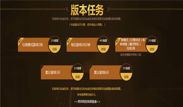 【3】玩家每日完成任务,即可根据当日的完成任务情况领取对应数量的游戏勋章。所有道具限兑换1次。