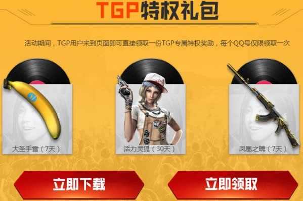 活动期间,TGP用户来到页面即可直接领取一份TGP专属特权奖励,每个QQ号仅限领取一次