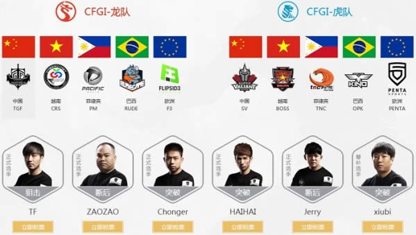 A:被邀参加2017 CFGI的全部队伍的选手(含新人选手及替补)都有资格参与本次的全明星投票,每个账号每天最多可投出10张选手票,但每个账号每次最多可同时选择3名来自同一战队的选手进行投票。