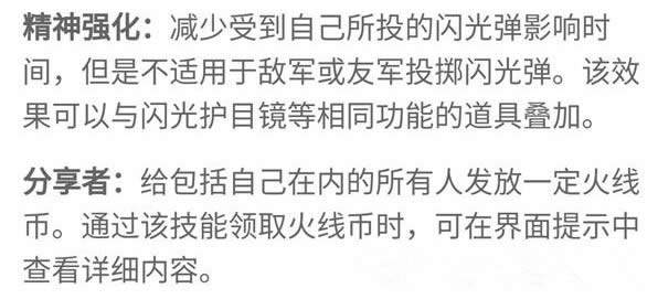 虽然是给自己加回血的buff,但是可以给同房间的所有玩家增加一段时间无限子弹的buff这个很强。还有防闪光的属性,我想说,能再坑一点吗?减少自己扔的闪光弹效果?这个属性有什么存在的意义吗?难道就是为了防止自己手残闪光弹扔墙上弹回来了吗?
