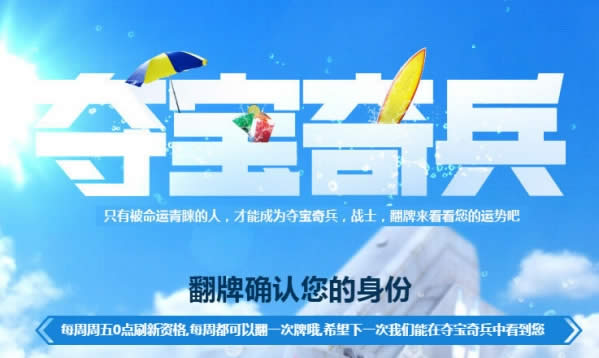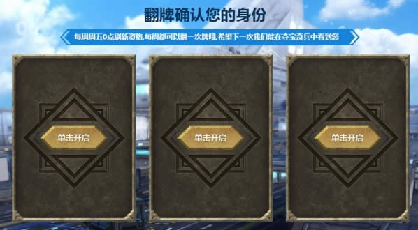 每周周五0点刷新资格,每周都可以翻一次牌哦,希望下一次我们能在夺宝奇兵中看到您