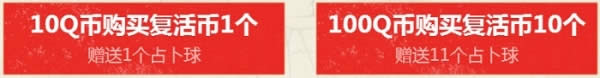 2.10Q币购买复活币1个可获得1个占卜球,100Q币购买复活币10个可获得11个占卜球;