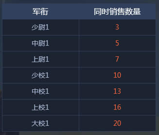 使用交易所进行拍卖交易有一定的等级限制,最低从少尉1可进行销售,随着军衔上升,可销售的道具数量也随之增加。