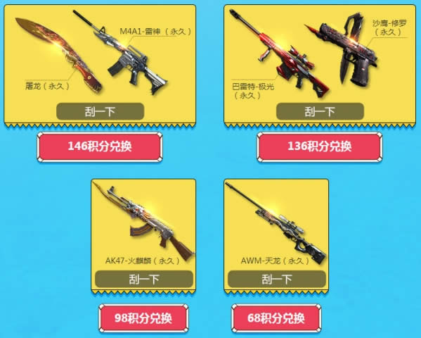 3. 使用刮刮卡时可获得对应刮刮卡积分,可用来兑换道具;