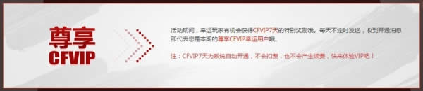 活动期间,幸运玩家有机会获得CFVIP7天的特别奖励哦。每天不定时发送,收到开通消息