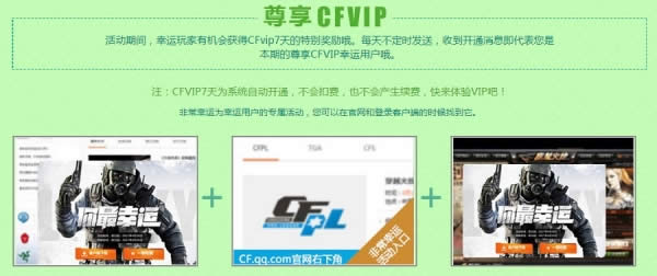 活动期间,幸运玩家有机会获得CFvip7天的特别奖励哦。每天不定时发送,收到开通消息即代表您是