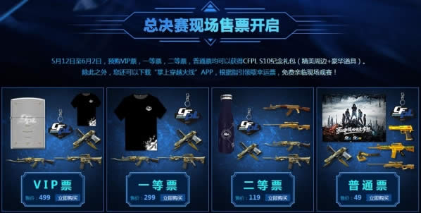 (精美周边+豪华道具)。不同的票所对用的礼包内容也将有所不同。而幸运票可通过”掌上穿越火线“APP免费获取!