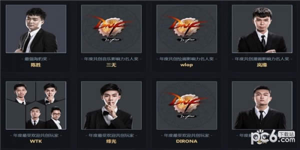 该奖项将共创大赛六大品类,即音乐、原画、手工、装扮、视频、称号中各评选出一位获奖者,成为2018年DNF名人堂年度共创玩家创作者