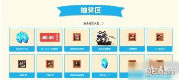 获得抽奖机会后可以前往下方抽奖区进行抽奖,获得实物、游戏道具或碎片奖励