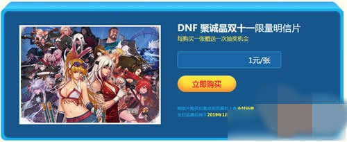 双十一限量明信片1元每件,每购买一张明信片可获得一次抽奖机会,明信片购买时无需支付邮费,购买后需点击按钮支付15元运费并填写寄送地址,我们将在2019年1月1日前按照订单先后顺序为您发货,未支付邮费并填写地址的玩家视为自动放弃明信片获取资格,将无法为您发货
