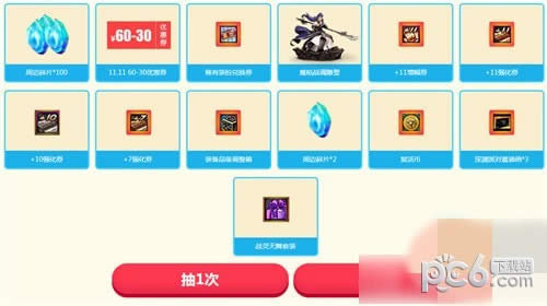 获得抽奖机会后可以前往下方抽奖区进行抽奖,获得实物、游戏道具或碎片奖励;