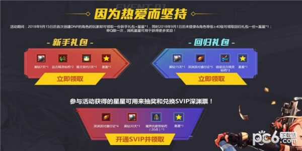 【1】活动一新手礼包和回归礼包一份,参与即可获得,最新10月活动已经上线。