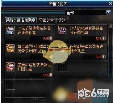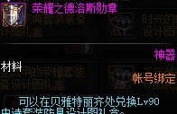 使用荣耀之德洛斯勋章即可兑换散件升A套设计图。