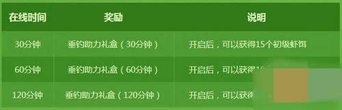 1、活动期间,玩家每天在线达成一定时间可以领取虾饵。累积时间以帐号维度累积,每个帐号每天限制领取一次。