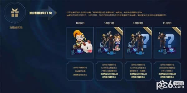 荣耀时刻”抽奖池,有机会获得限定手办。抽奖环节将在10月7日、10月21日、10月28日以及11月3日在直播环节中抽取,请玩家关注全球总决赛直播环节。