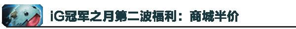 第二波福利很快来临,商城全场半价(3个月内新上架道具除外),半价内容包含英雄,非限定皮肤、加成道具、守卫皮肤、改名卡。与此同时,周边商城精选商品也将迎来半价。