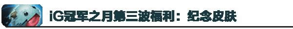 所有召唤师可以免费领取三个iG冠军宝箱,它们分别可以开出随机永久皮肤、永久召唤师图标以及胜利加成卡。