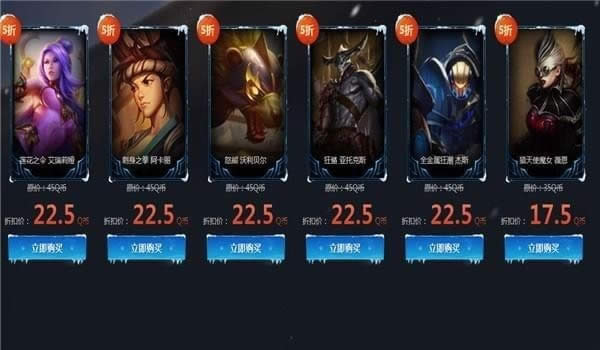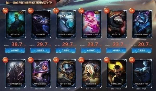 2.抽取了幸运资格的召唤师,可以以折扣购买页面道具。页面会展示不同的道具及折扣,但是每一种折扣的所有道具,仅限购买1次;