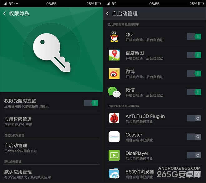 OPPO R7的ColorOS v2.1系统自带了全新的安全中心应用,它不仅包含了清理系统垃圾、流量管理、电量管理等必备的功能,还可以非常方便的管理应用权限,限制一些应用的自启动行为。