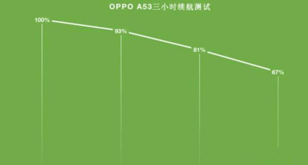 考虑到很多用户会购买这台机器给家中长辈使用,那么续航能力其实就成为一个比较重要的评判点。在硬件上,OPPO A53搭载了一块4080mAh的电池,是目前安卓阵营的主流水平,因此续航能力也应该是不错的。经过实际的三小时续航测试(视频为1080P分辨率,和平精英和王者荣耀为默认画质,屏幕亮度皆为50%),OPPO A53最终剩余67%的电量,这个续航能力在今年的手机里处于第一梯队的水准,并不需要有过多的续航担忧。
