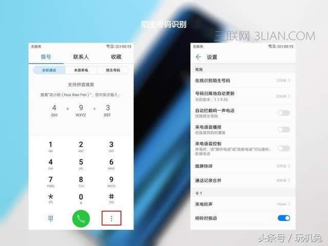 华为手机也支持陌生号码识别功能,可以识别诈骗、骚扰、快递等电话的来电信息。不过为了节省流量,这项功能是默认关闭的。用户可以在拨号右下角的设置里,点击在线识别陌生号码进行开启。
